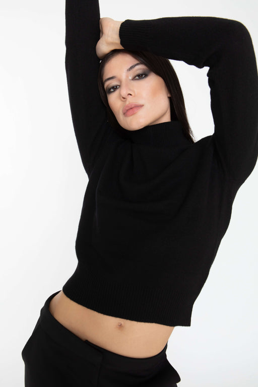 Black Cropped Turtle Neck Sweater